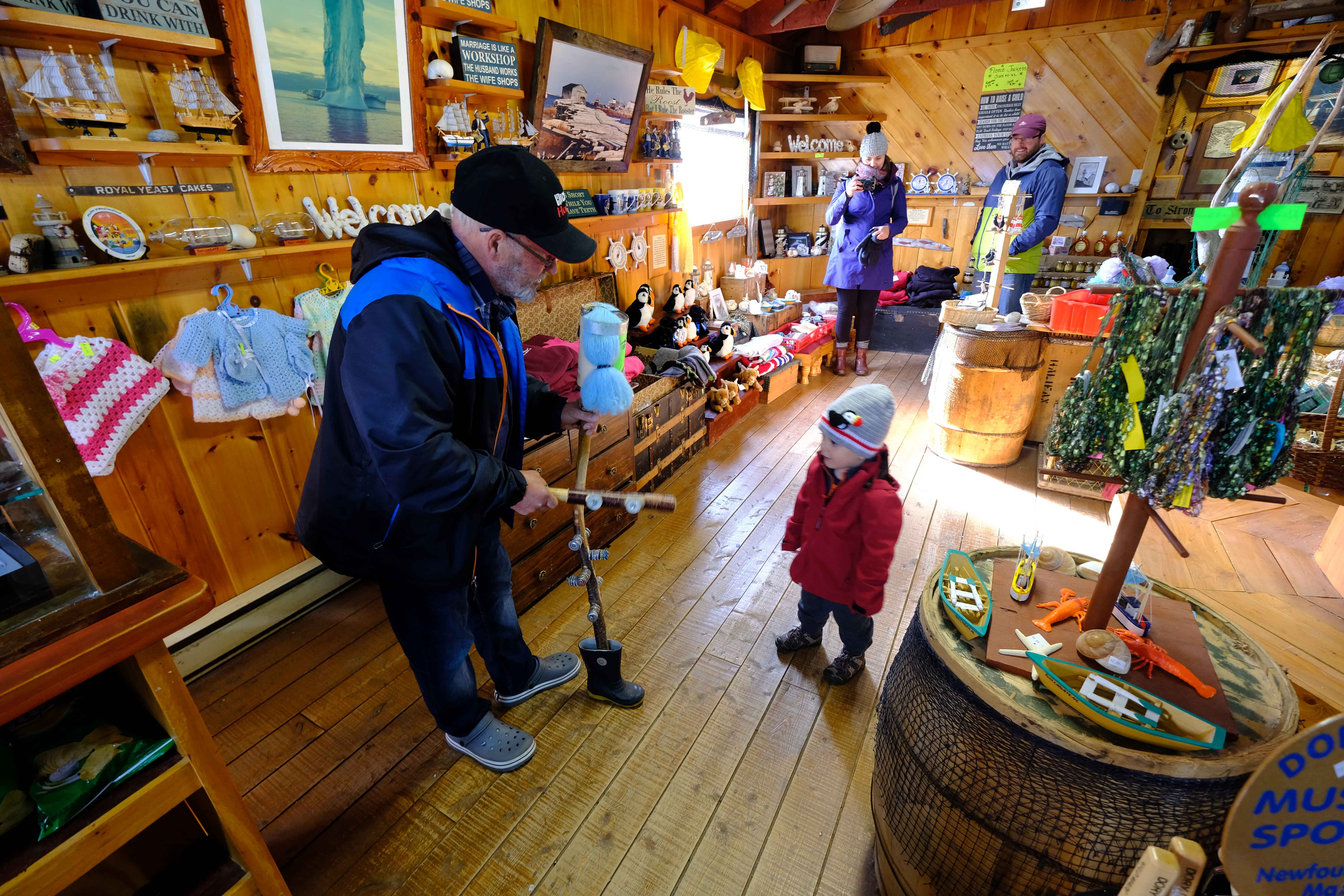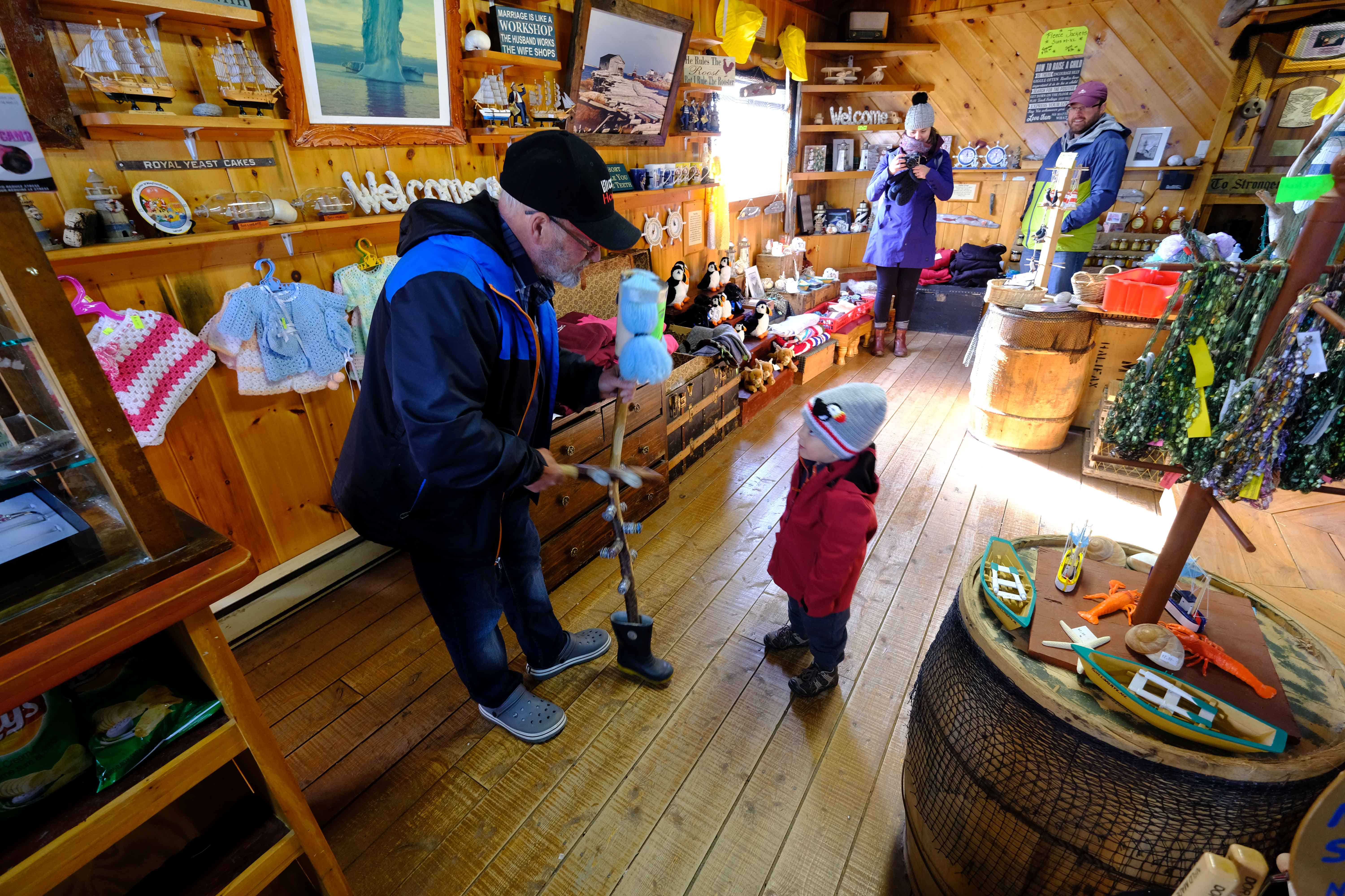 The next stop was the fishing museum outside of Twillingate. This is a marvellous resource, and a lot of fun to explore. It is privately created, and you can really see that the owner is proud of the fishing heritage of the area. It was interesting to see the many artifacts that they had assembled - include the 'make and break' engines that are celebrated in story and song. Ollie got a demonstration of the ubiquitous silly stick that seems to be around the area. Some pictures of that are displayed below.