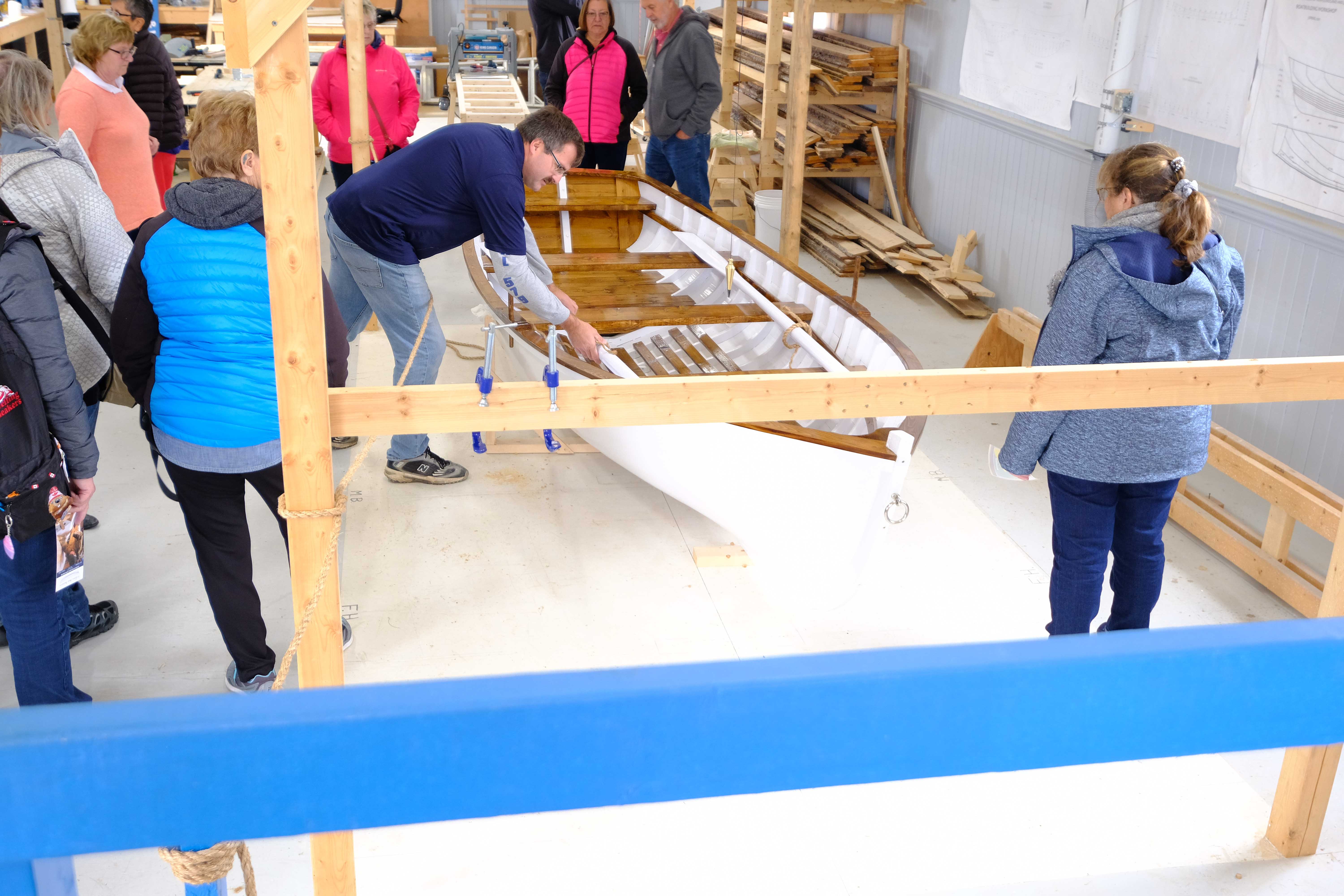 Just across from the Museum is the Shipbuilding exhibit, which we visited after lunch. A builder explains to the paying guests how he builds the small dories that the region is well know for, and he demonstrated many of the techniques that they use. At the end of that display, he made a small wooden boat for Ollie that was a huge hit - and which got its baptism in the ocean later in the day!